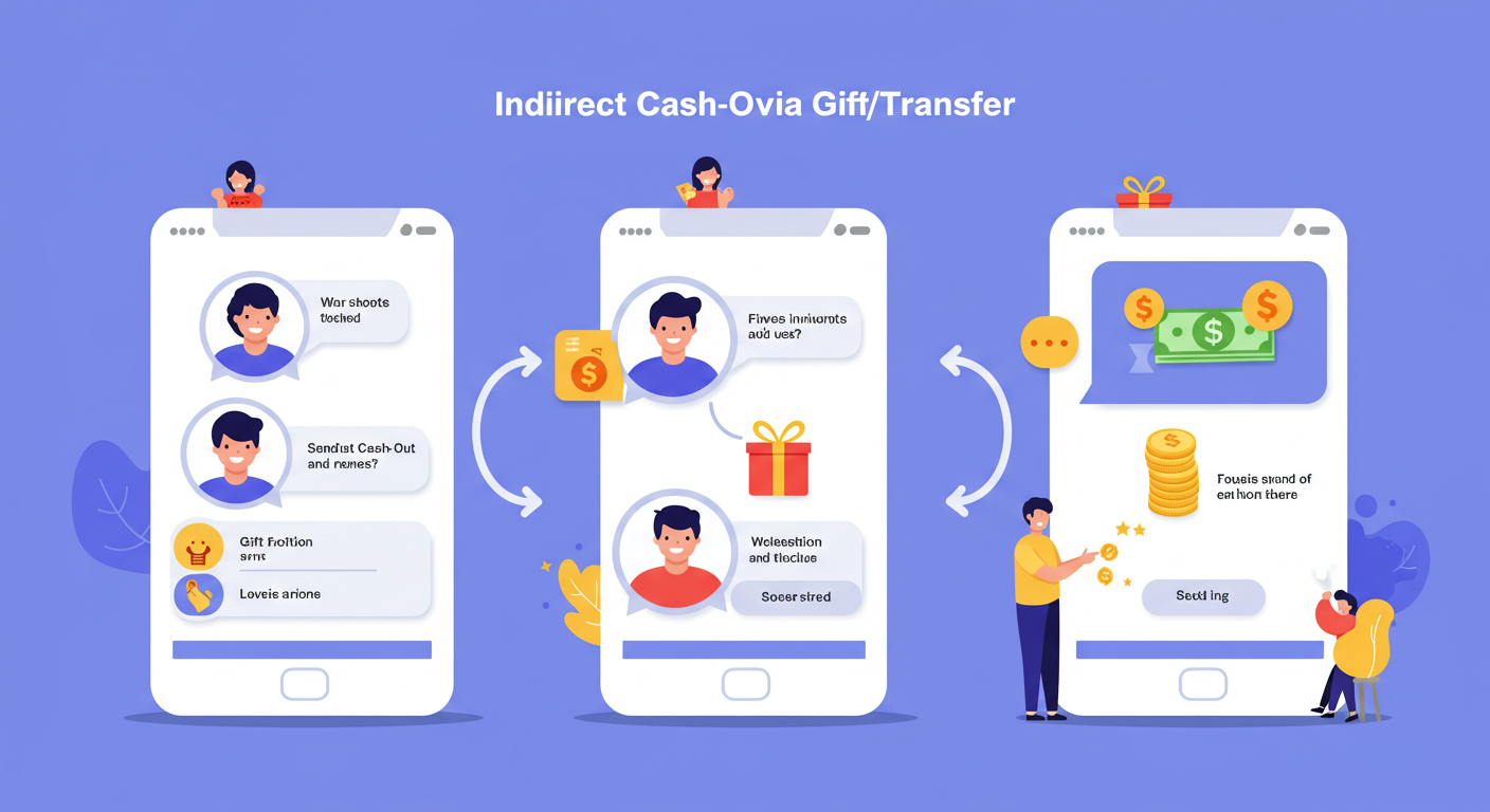 포인트로 **소액 결제 → 상대방이 대신 송금**하는 방식입니다. 예를 들어, 친구에게 선물하기 기능으로 기프티콘을 보내고, 현금으로 돌려받는 방식이 이에 해당합니다.