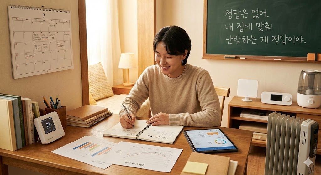 주변에서 좋다는 방법이 내 집에서는 안 맞을 수도 있어요. 그래서 가장 좋은 건 한 가지입니다. 오늘부터 2~3일만, 설정온도를 조금 조정하고 단열을 보강해보는 것. 그 작은 테스트가 “내 집에 맞는 정답”을 만들어줍니다.