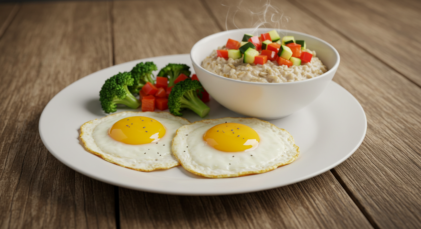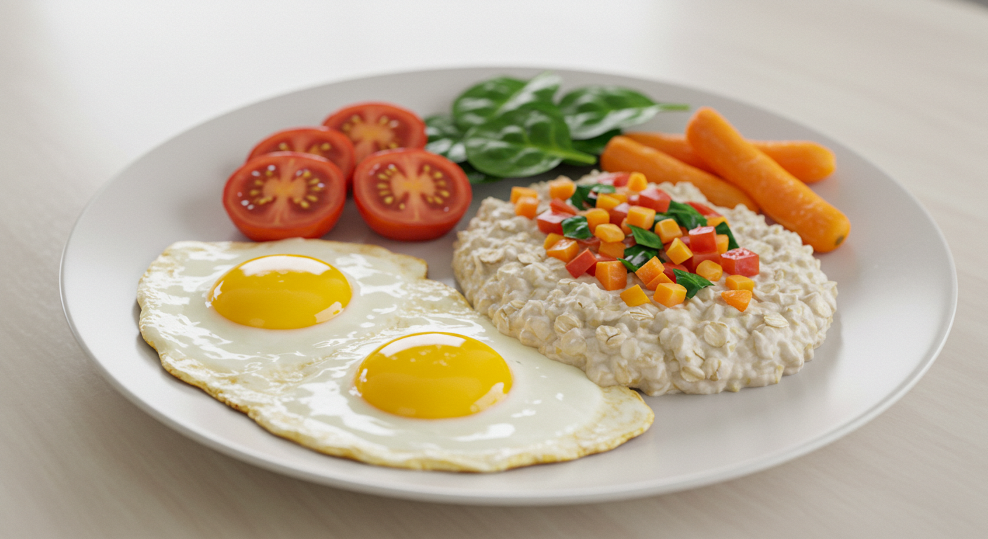 - 단백질·식이섬유·건강한 지방 위주로 포만감↑ (예: 달걀·그릭요거트·귀리·견과·올리브오일).