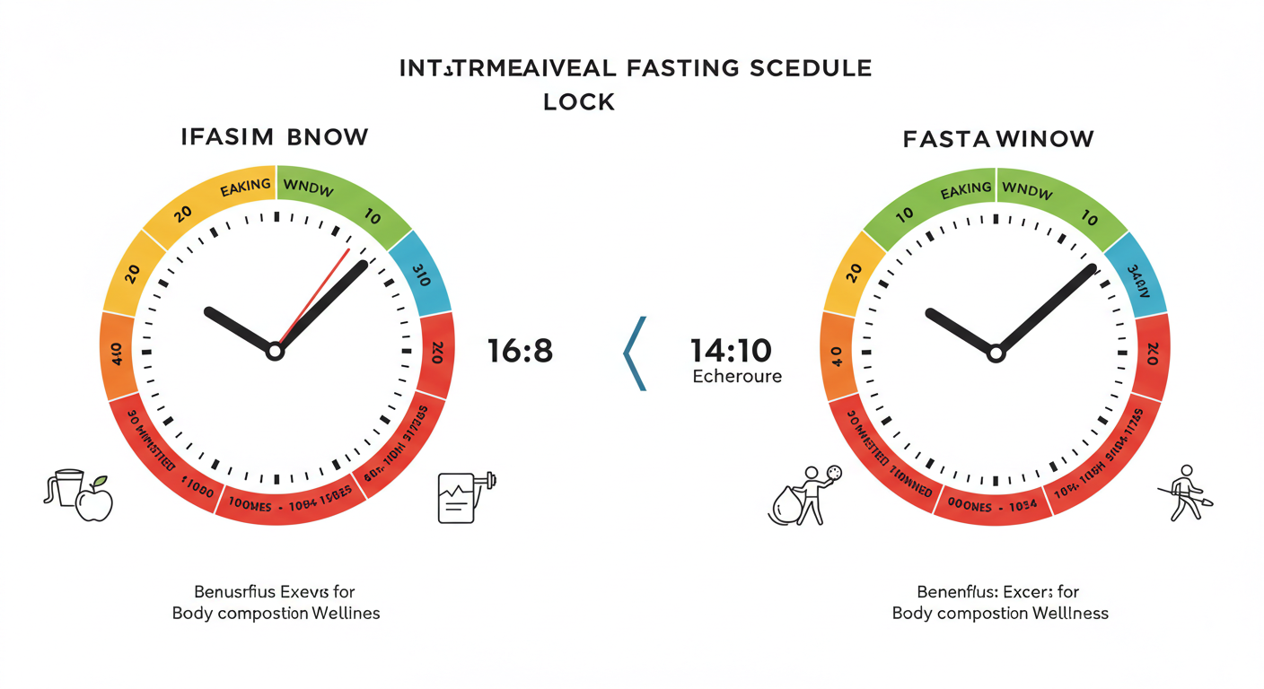 - 간헐적 단식: 하루 섭취/단식 시간을 나눠 운영하는 식사 패턴 (예: 16:8, 14:10).